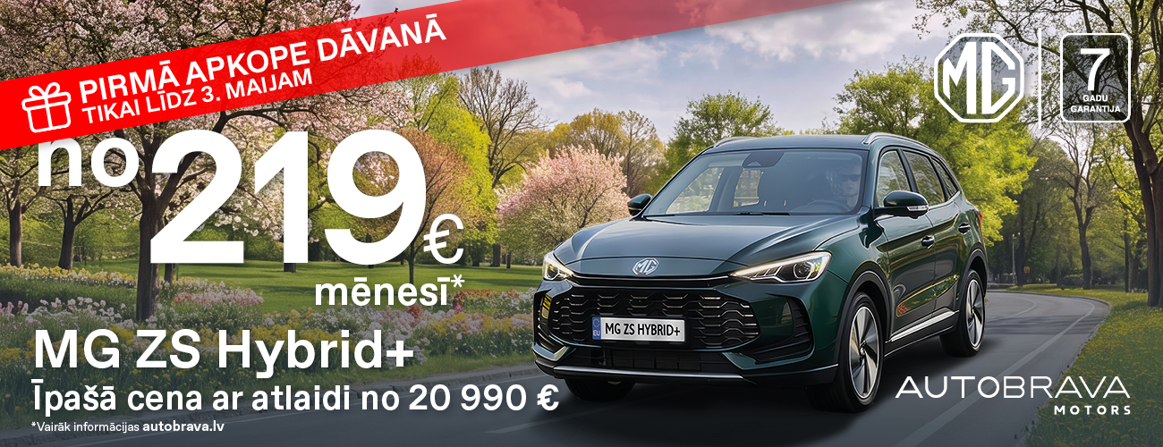 Ekonomiskais MG ZS Hybrid+ pieejams uzreiz no 219 € mēnesī un pirmā apkope DĀVANĀ! Tikai līdz 3. maijam!