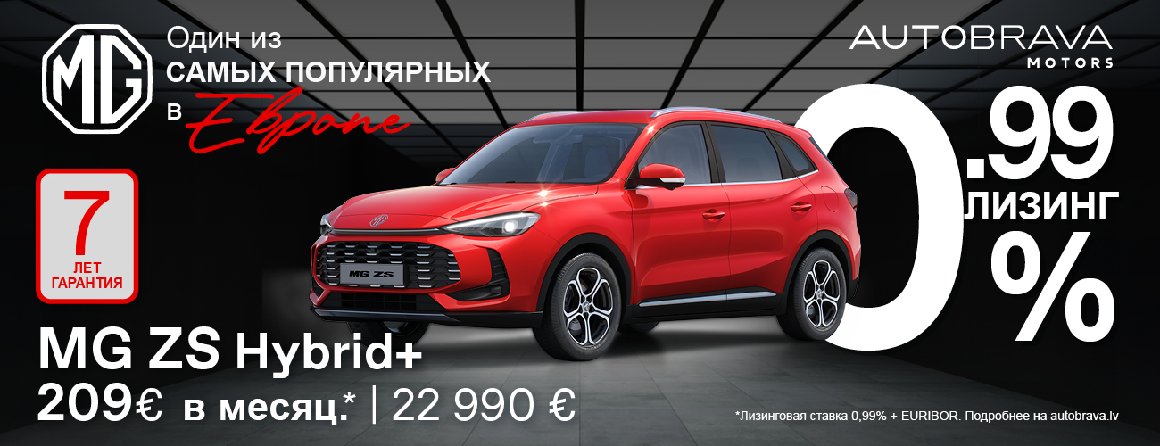 Особые условия — лизинговая ставка всего 0,99%+ EURIBOR, ежемесячный платёж за MG ZS Hybrid+ — всего от 209 евро.